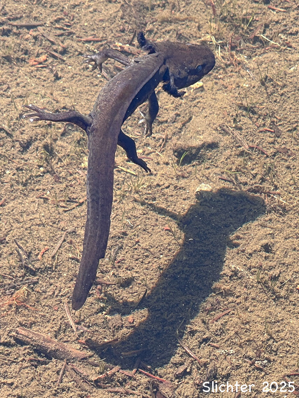 A larval northwestern salamander swimming in the shallow waters of Rock Lake, Indian Heaven Wilderness......September 17, 2025.
