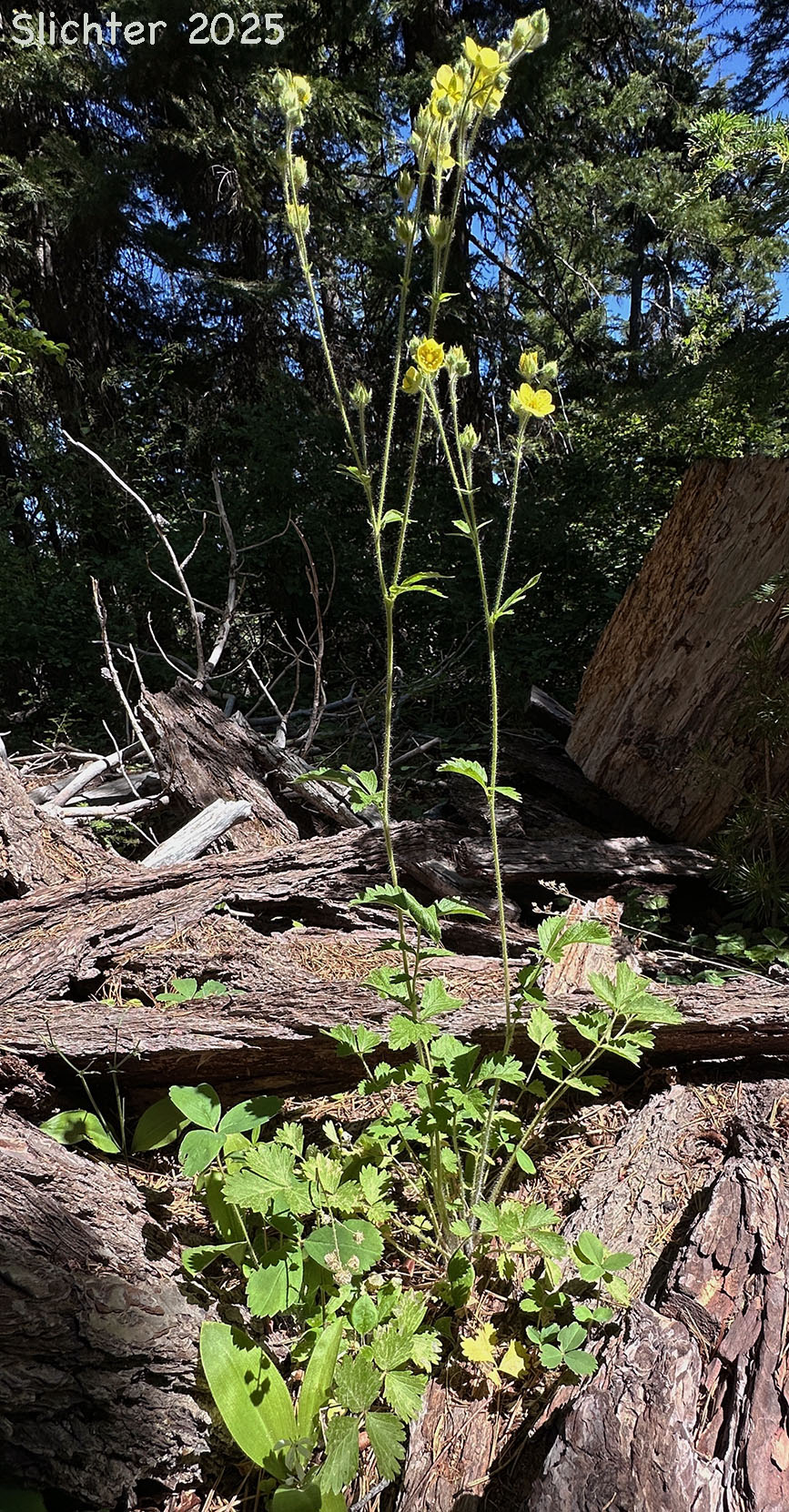 Nevada cinquefoil blooming along the Cedar Creek Trail #457, Mount Hood National Forest......July 5, 2025.