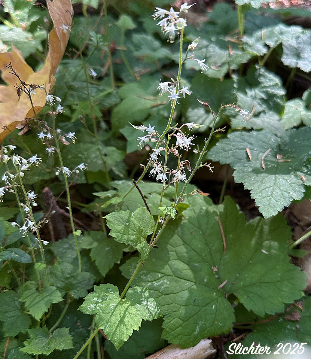 and flowers of coolwort foamflower as photographed along the eastern edge of