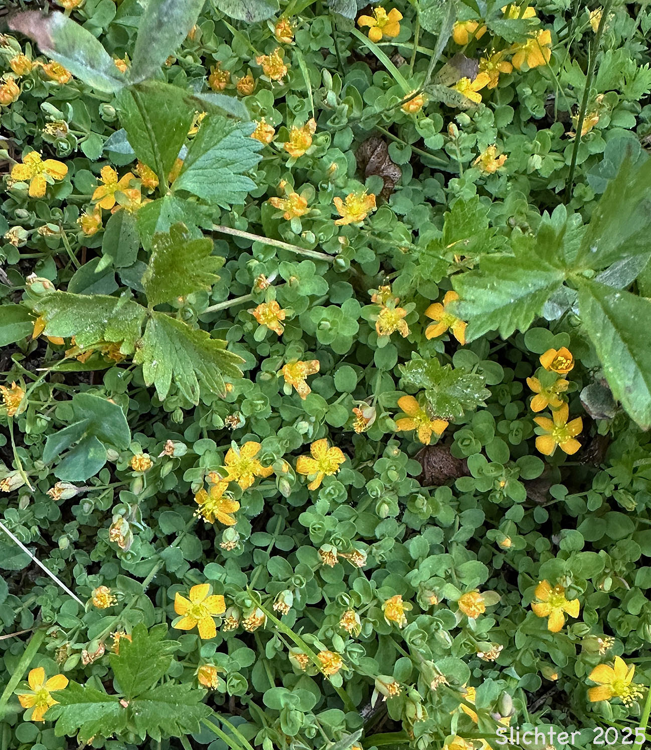 Tinker's penny blooming on the moist shoreline at the base of one of the lava flows on the east side of Clear Lake, Willamette National Forest......August 2, 2023.