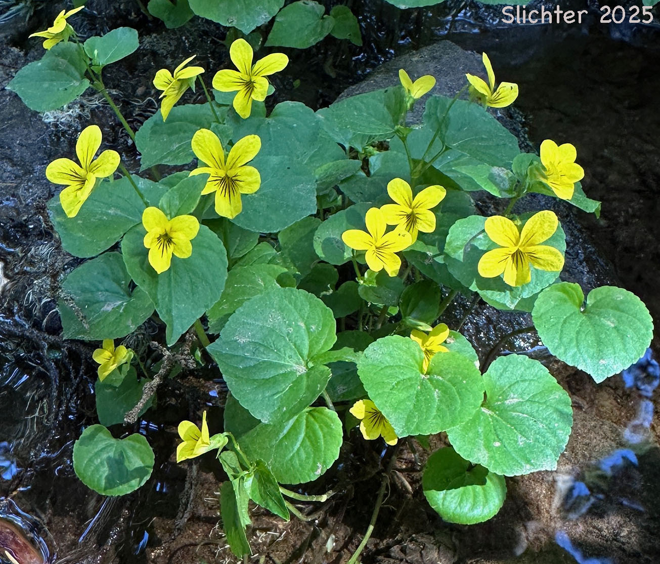 Stream violet blooming at left in shallow water in Umbrella Falls Creek along the upper part of the Umbrella Falls Trail on the southern peripherary of the Mount Hood Meadows Ski Area, Mount Hood National Forest.......July 4, 2021. The photo at right shows a stream violet in bloom in a clearcut in the Monte Cristo Natural Area Preserve......June 21, 2022.