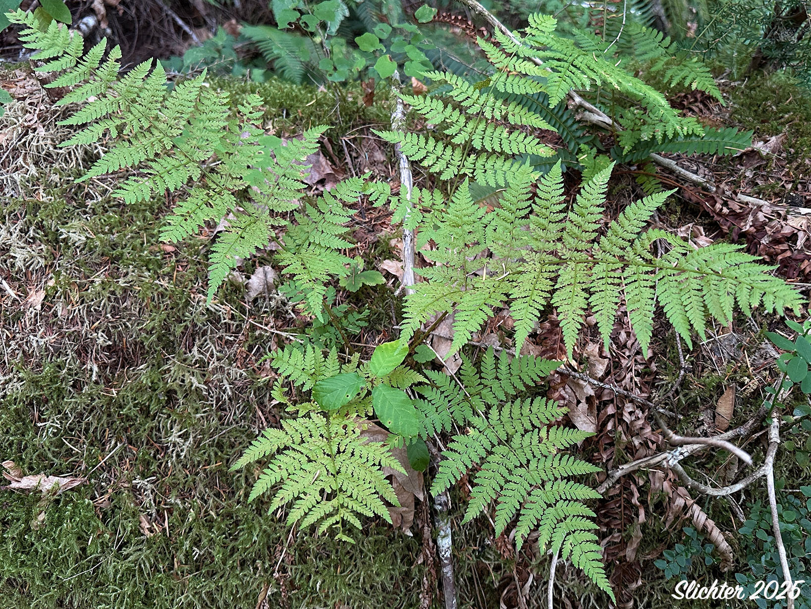 Spreading woodfern observed along the Lewis River Trail #31 about one-quarter mile upstream from the bridge over the Lewis River at Forest Road #9039, Gifford Pinchot National Forest......June 18, 2024.