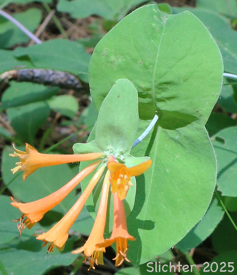 terminal inflorescence and perfoliate uppermost leaf orange honeysuckle as seen