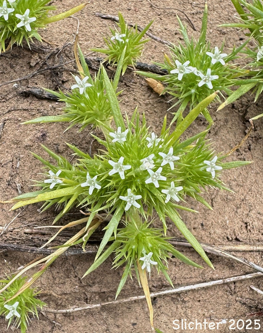 of Mt. Adams .........July 2, 2006. The photo at right shows a close-up sideview of least navarretia as seen along Road K1000 east of the Mt. Adams Highway.........June 17, 2007. Note the long, narrow lower leaves.