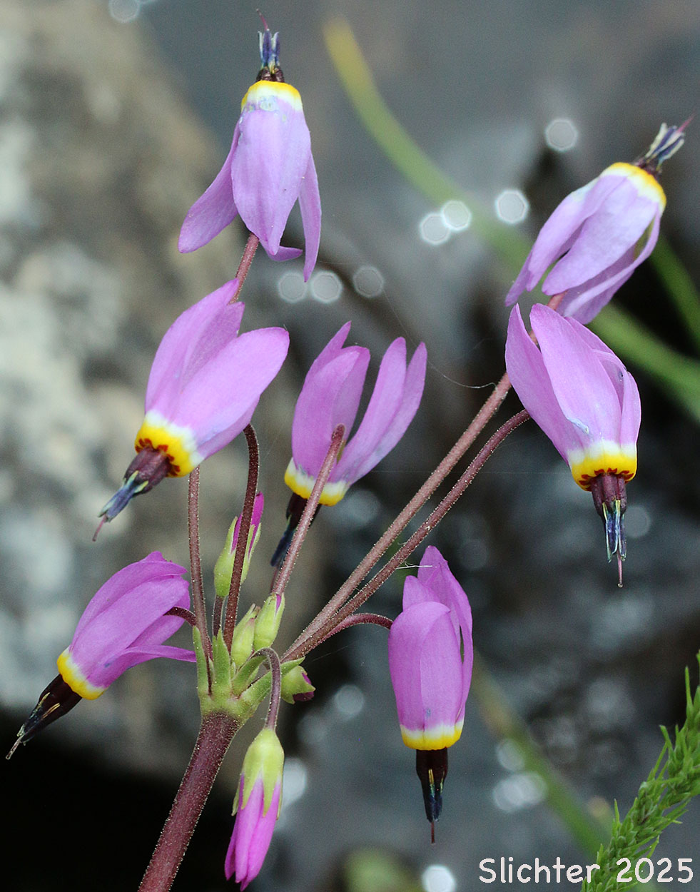 Two close-up views of a flower of poet's shooting star as seen along Road K1000 to the east of the Mt. Adams Highway on the southeastern slopes of Mt. Adams...........May 13, 2007. Note the numerous glands on the scape and pedicel.