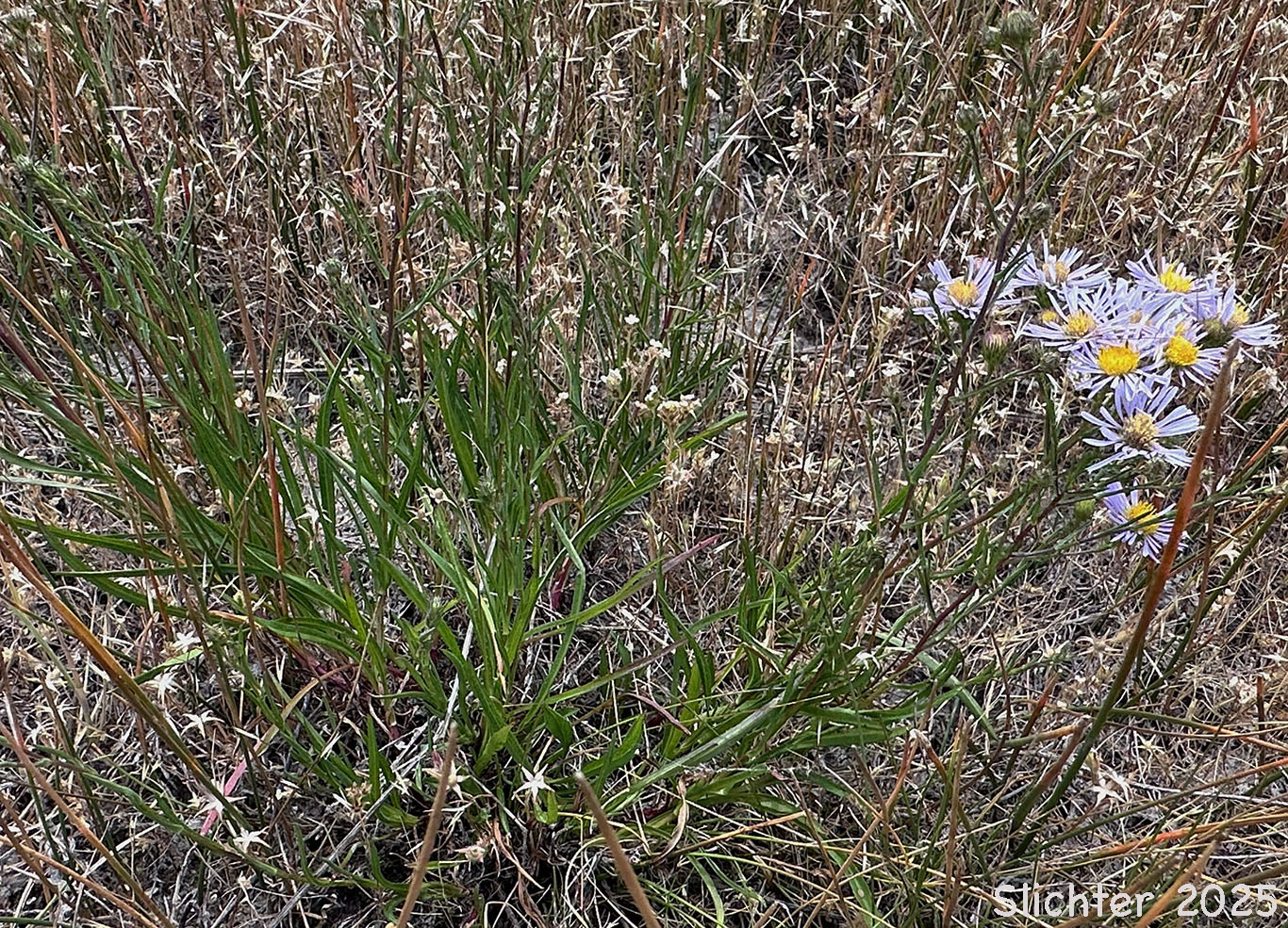 right illustrates the mid to upper stem leaves of western aster as found in prairie alongside Lakeside Road in Conboy Lake National Wildlife Refuge.........August 10, 2007. Note the narrow
