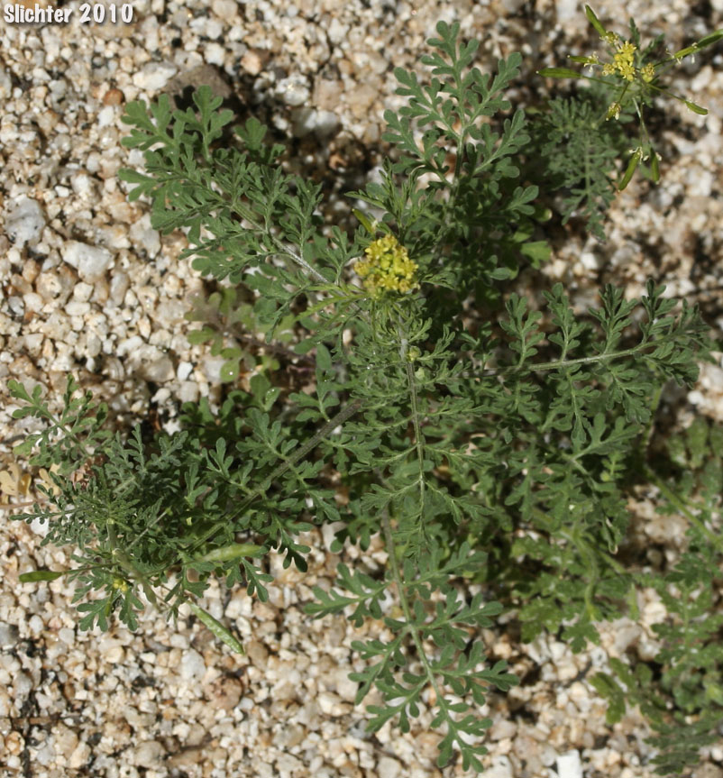 Western tansymustard blooming at Mine Wash, Anza-Borrego Desert State Park......March 27, 2010.