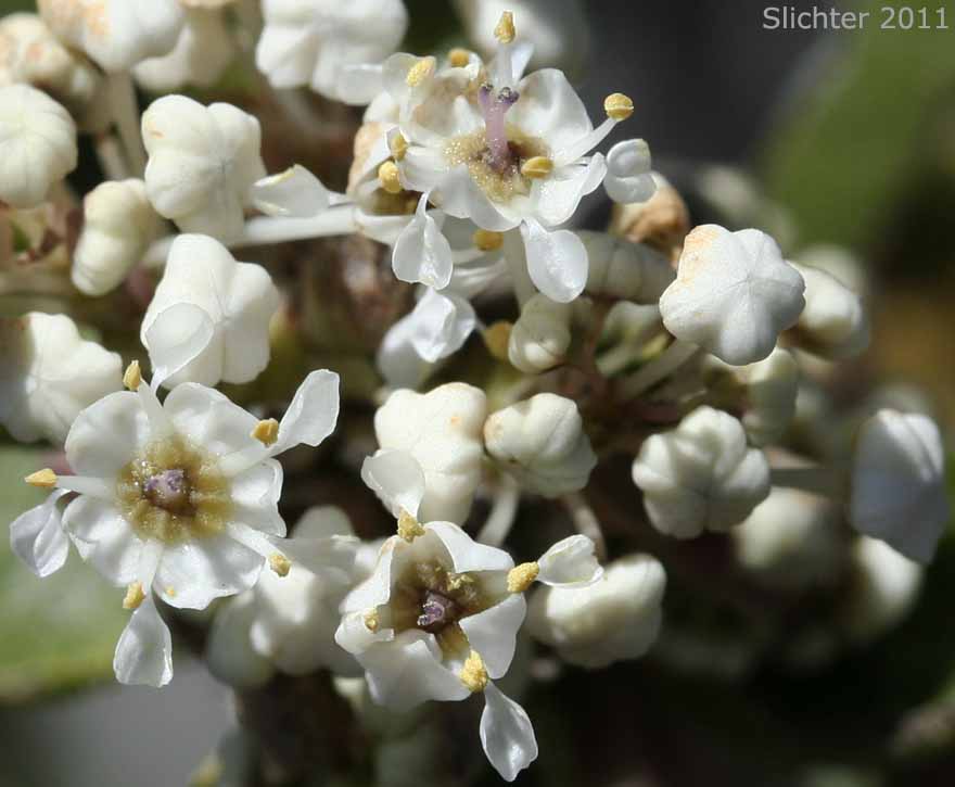 Cup-leaved ceanothus in bloom along San Diego County Route S-22 at the eastern outskirts of Ranchita, California.........March 28, 2011.
