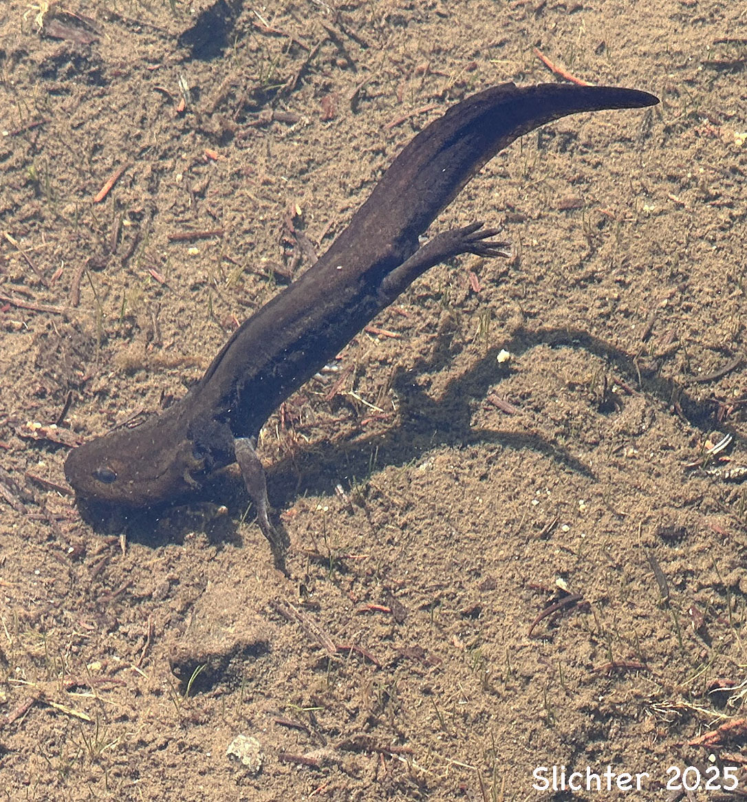 A larval northwestern salamander swimming in the shallow waters of Rock Lake, Indian Heaven Wilderness......September 17, 2025.
