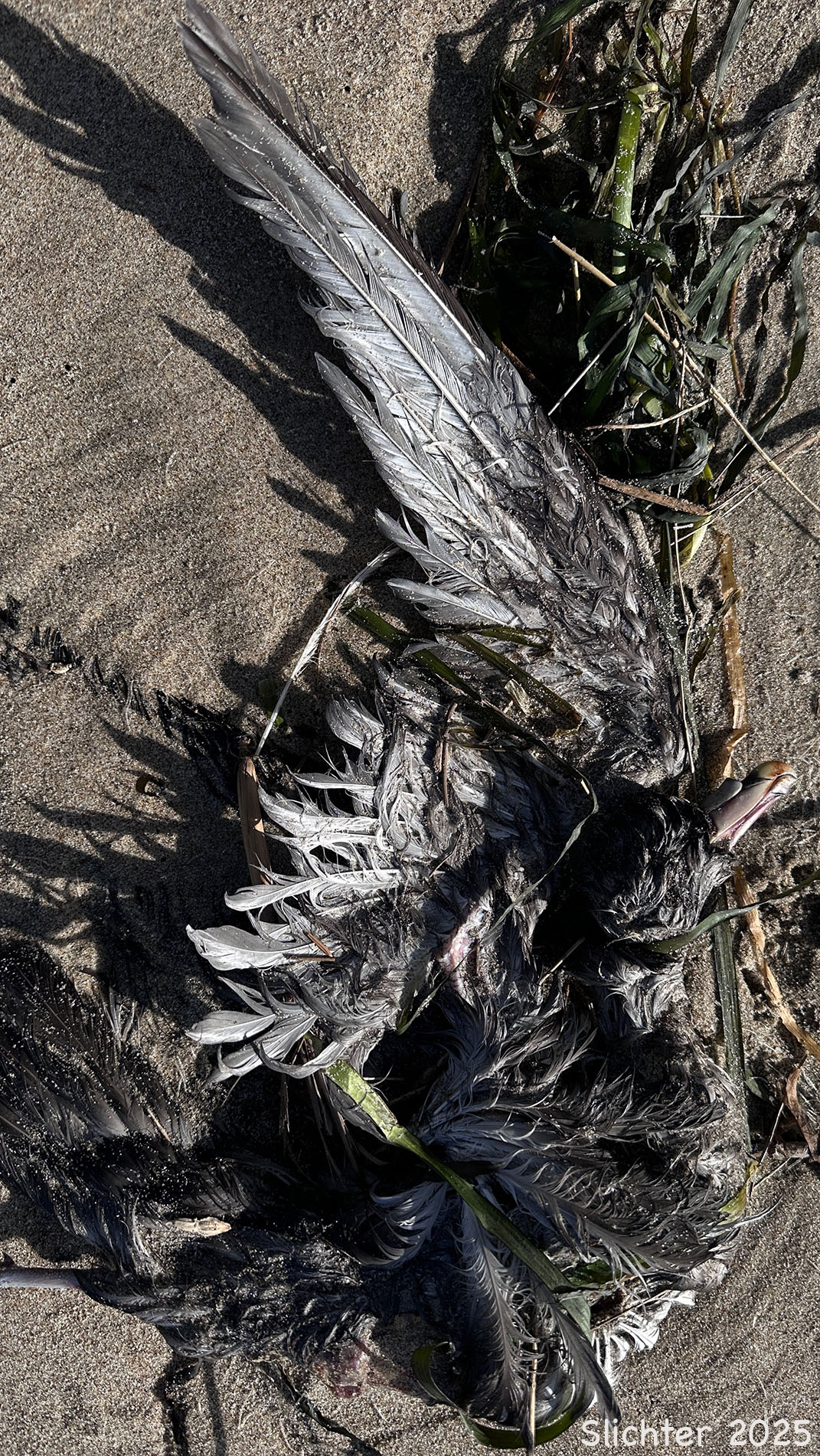 A deceased northern fulmar washed up onto the high tide line at the mouth of Sand Lake, Sitka Sedge State Natural Area.....November 2, 2025.