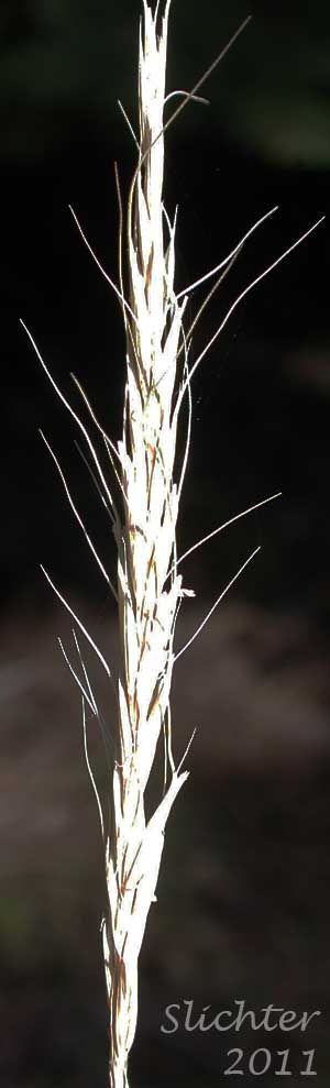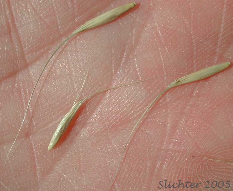 Possibly Dore's needlegrass as seen along FS Rd #8290 to Bird Creek Meadows, Gifford Pinchot National Forest.........August 25, 2005. ID was done using "The Flora of Mount Adams, Washington" by David Biek and Susan McDougall. Three needlegrass species are listed as present at Mt. Adams, including A. occidentale ssp. occidentale and A. occidentale ssp. pubescens. The latter two species have hairs up to 1 mm long along the basal segment of the awn which this individual lacks, so A. nelsonii was chosen.