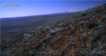 The roadbed at first is in good shape, easy for most vehicles, but the road, at least in the winter & spring, becomes tougher to navigate for low slung cars (like mine) with about 2 miles to go to the summit of the pass. The road becomes rutted, and the area between the 2 tire paths becomes full of baby sagebrush and other plants, scraping the the heck out of the bottom of low slung cars. The last mile and a half also become pretty steep. The top of the pass features several interesting, lichen-encrusted outcrops of rock, with numerous early season wildflowers. There is room to park at the top, and the pass itself is pretty easy to explore, with possibilities to roam outward (both north and south) along the crest of the Pueblo Mts.