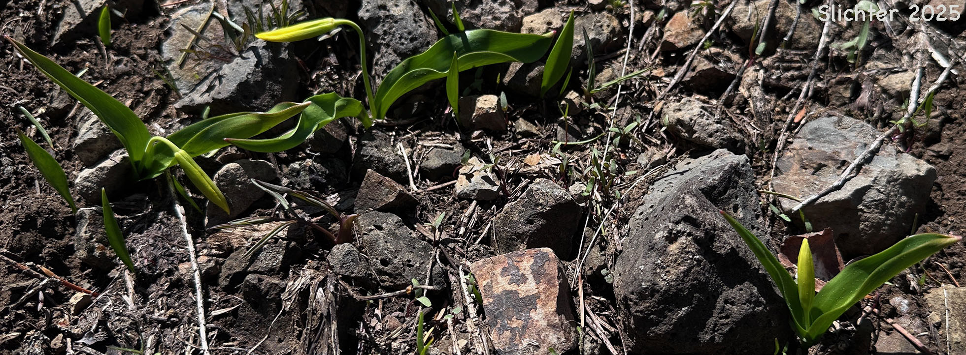 Pale-anthered glacier lilies beginning to bloom at a spot along the trail to Lookout Mountain from High Prairie where the snow lies late into the season, Badger Creek Wilderness.....June 29, 2023.