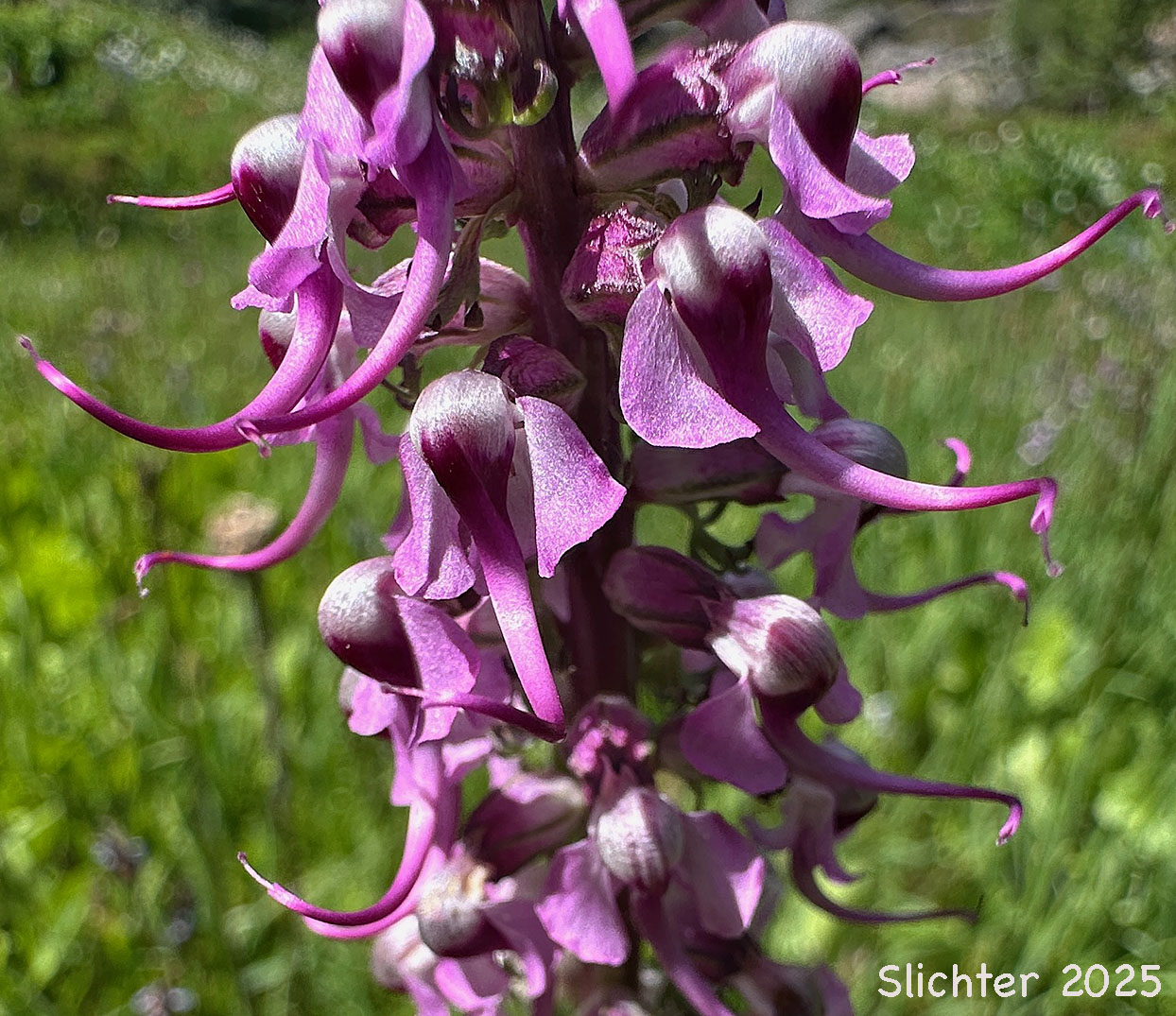 Habitat:Pedicularis groenlandica grows in moist meadows and occasionally in small cold streams from moderate to high elevation in the mountains.