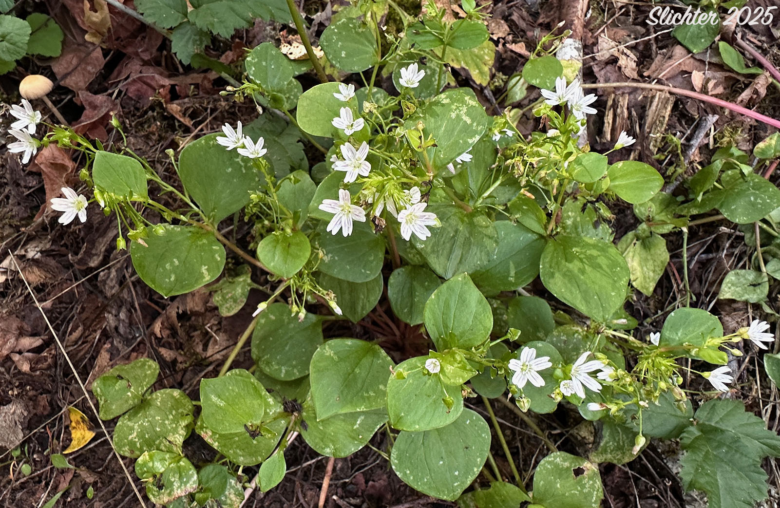 Synonyms: Claytonia heterophylla, Claytonia sibirica var. bulbifera, Claytonia sibirica ssp. sibirica, Montia heterophylla, Montia sibirica, Montia sibirica var. bulbifera, Montia sibirica var. heterophylla, Montia sibirica var. sibirica