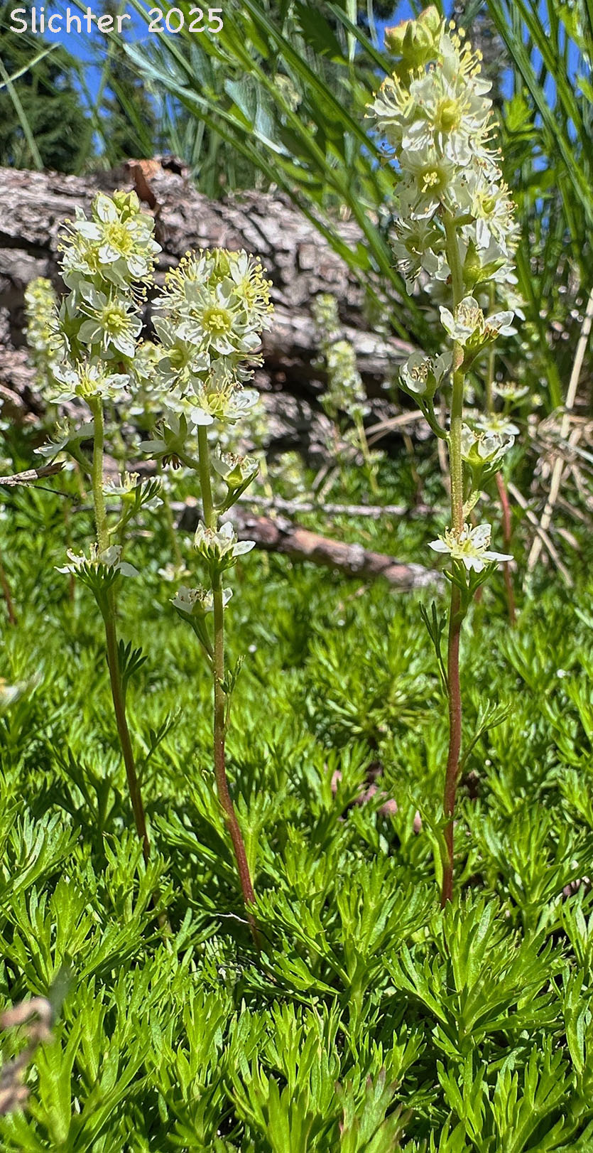 Partridgefoot as seen at left in bloom in moist meadows above a 20' waterfall on the South Fork Conrad Creek, Goat Rocks Wilderness.........July 22, 2016. The photo at right shows partridgefoot in bloom along the Bear Creek Mountain Trail #1130, Goat Rocks Wilderness......July 31, 2019.