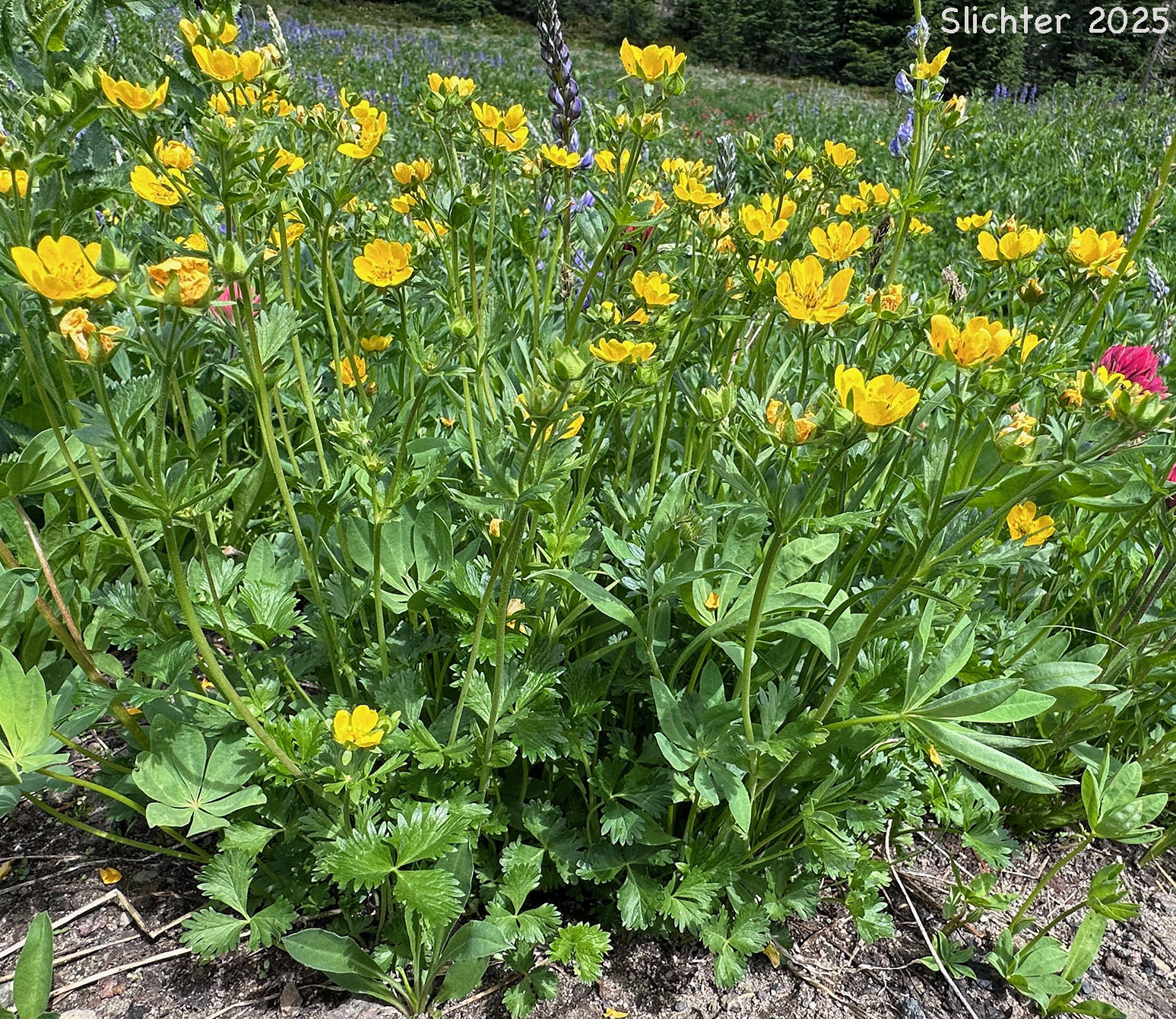 Fanleaf cinquefoil as seen at left blooming in meadows along the ski runs at