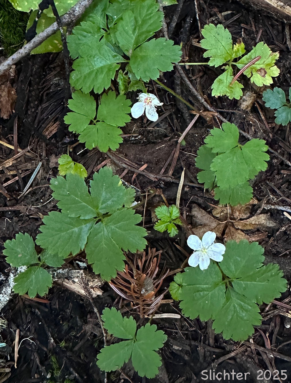 Five-leaf bramble with ripe fruit along the Thomas Lake Trail, Indian Heaven Wilderness.......August 31, 2020.
