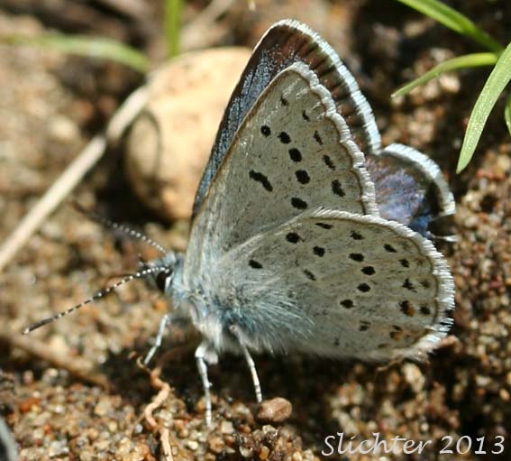 A pacific dotted blue on sandy soils next to the South Fork Tieton River about one-half mile upstream from the junction with Conrad Creek, Wenatchee National Forest...........June 28, 2013.