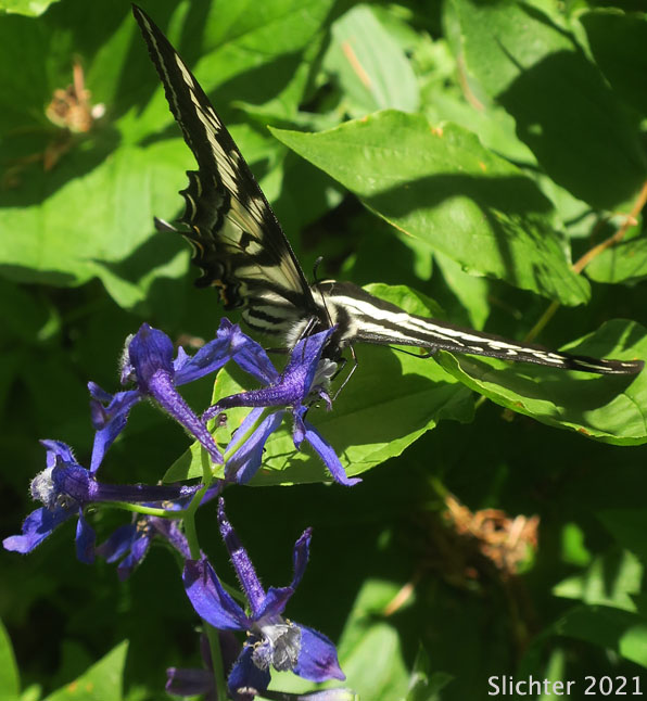 A pale swallowtail observed nectaring upon the flowers of upland larkspur (Delphinium nuttallianum) in forest openings atop Monte Cristo, Gifford Pinchot National Forest......June 18, 2021.