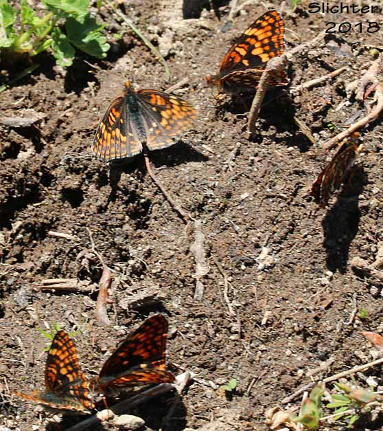 Hoffman's checkerspots mudding in upper Jordan Basin along the Goat Ridge Trail #95, Goat Rocks Wilderness.....July 12, 2018.