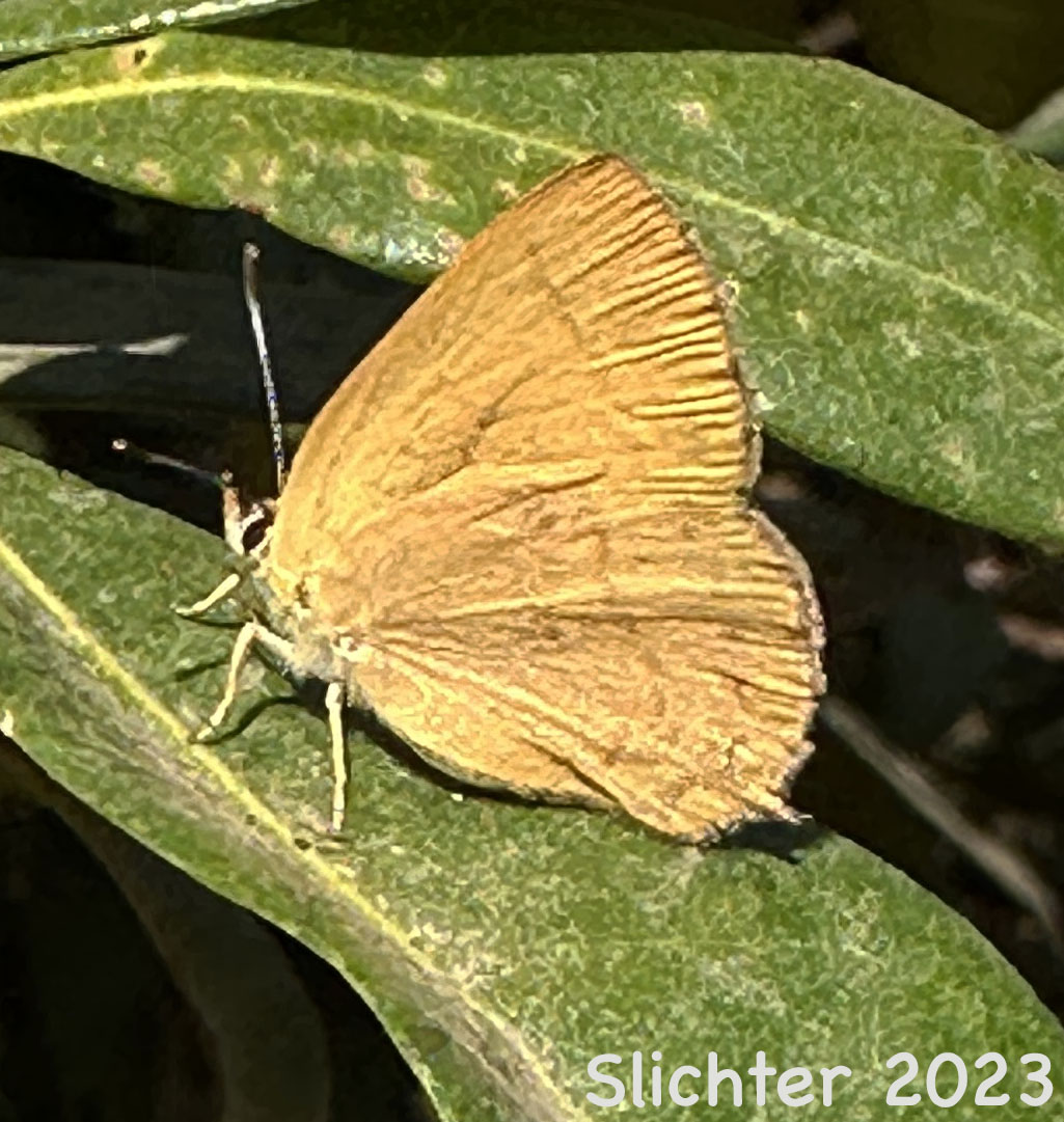 A golden hairstreak as seen on a golden chiquapin leaf along