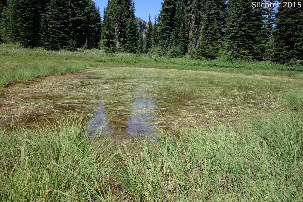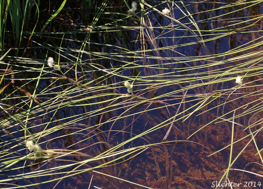 Simple-stem bur-reed as seen in a pond in a moist meadow on the east side of the Pacific Crest Trail #2000 between Deer and Sand Lakes, north of White Pass, Wenatchee National Forest..........August 27, 2014.
