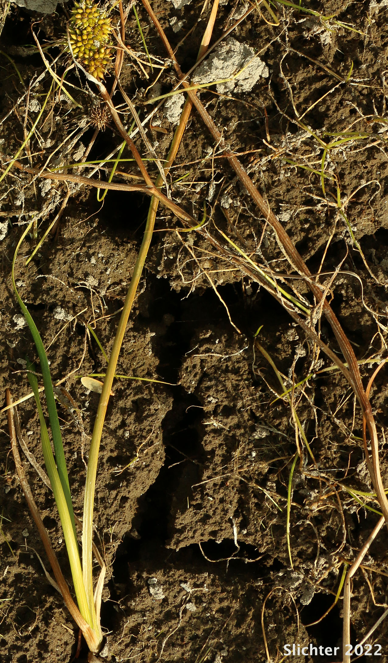 Senescing simple-stem bur-reed observed in a drying pond at the Indian Racetrack, Indian Heaven Wilderness......October 10, 2022.