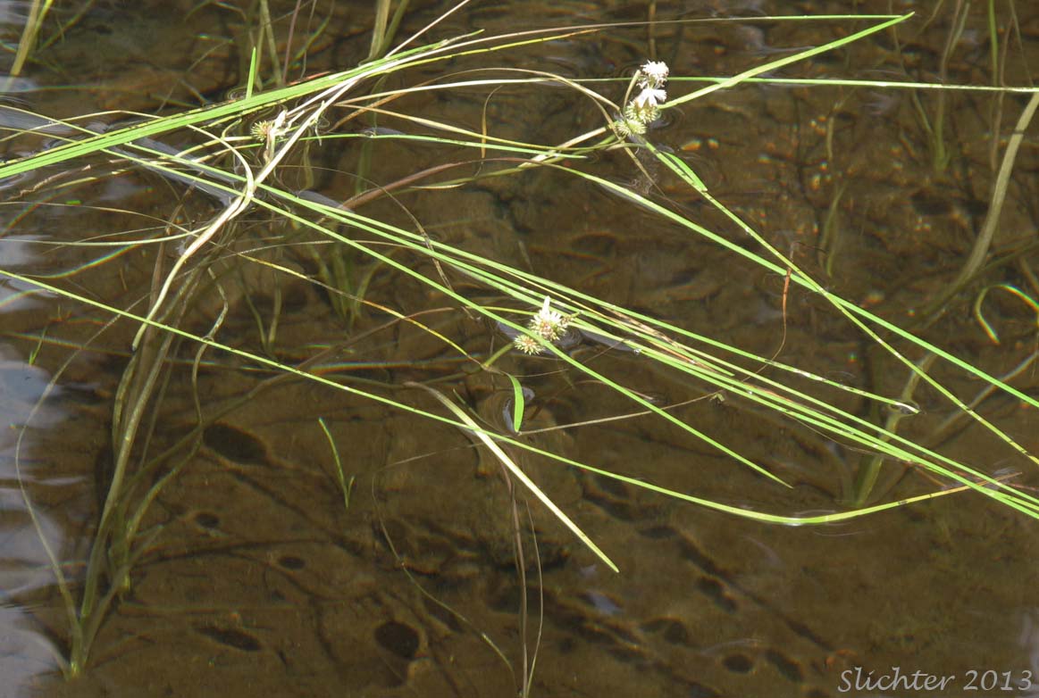 Simple-stem bur-reed seen blooming in a shallow pond along the East Crater Trail #48, Indian Heaven Wilderness........August 24. 2013.