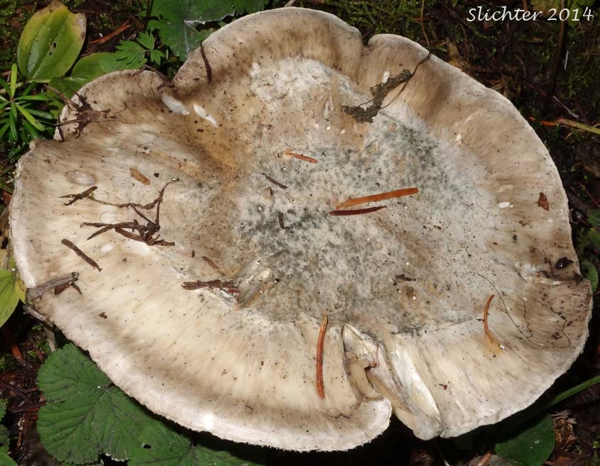 A dorsal view of what might be short-stemmed russula as seen along the Riley Trail #64 in the Mount Adams Wilderness............October 3, 2014.