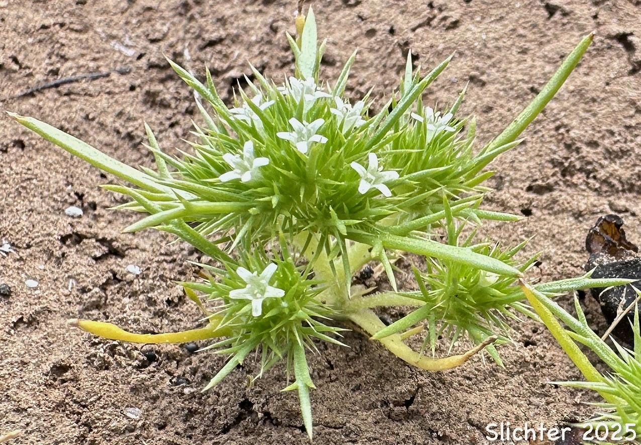 of Mt. Adams .........July 2, 2006. The photo at right shows a close-up sideview of least navarretia as seen along Road K1000 east of the Mt. Adams Highway.........June 17, 2007. Note the long, narrow lower leaves.