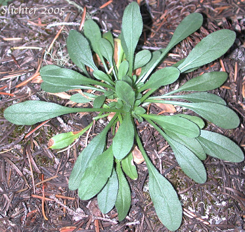 The photo above shows the oblanceolate basal leaves of bitter daisy.