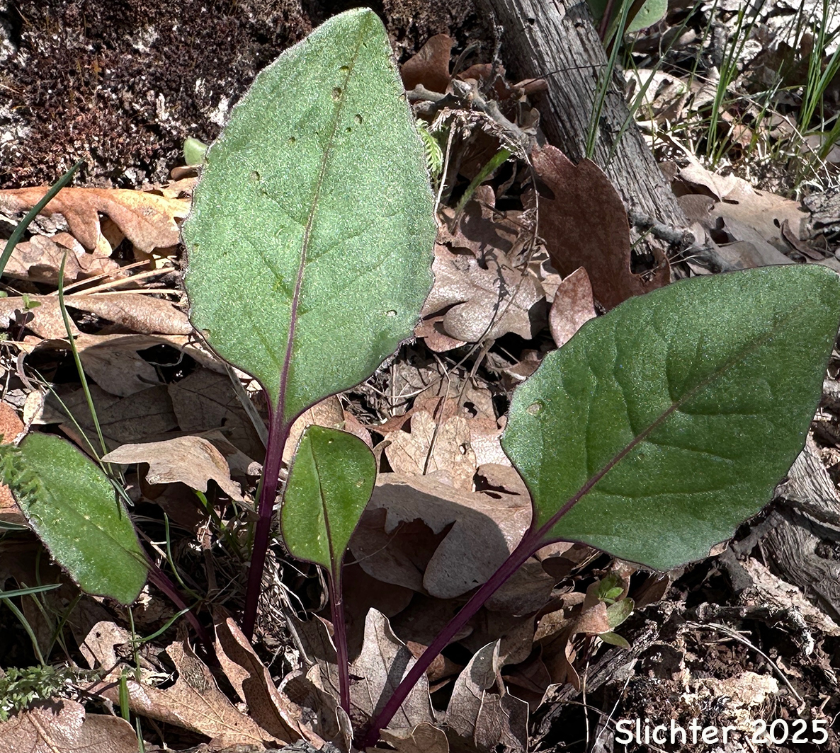 The photo at right shows the newly emerged basal leaves of western groundsel, which in this