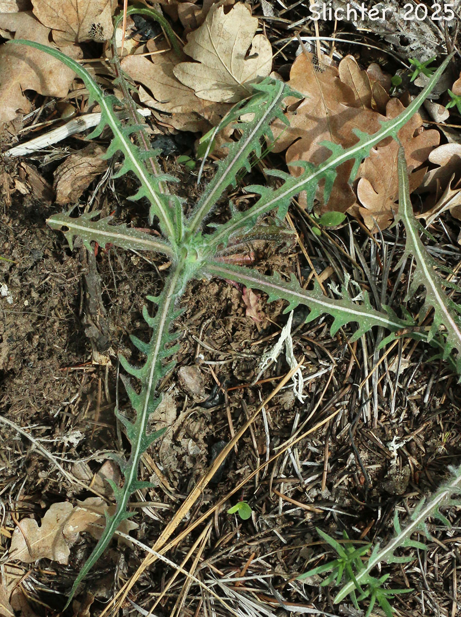 the base of the leaf. All 3 photos show spear-leaf agoseris