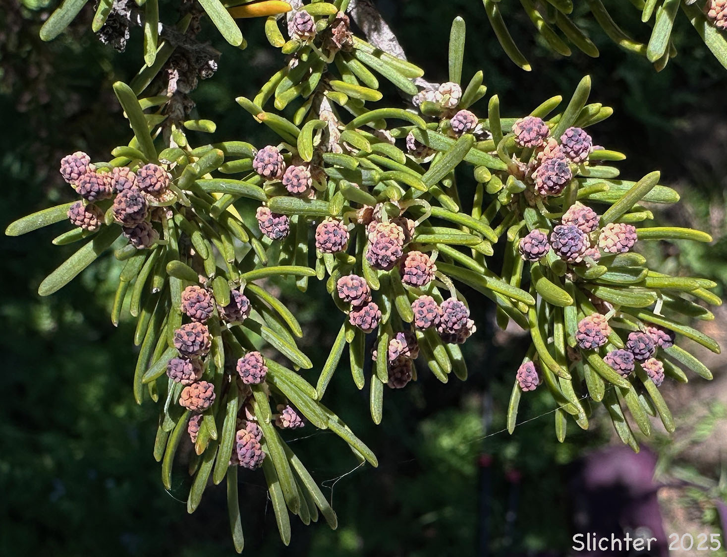Male pollen cones of mountain hemlock observed along the Timberline Trail south of the junction with the Umbrella Falls Trail #667, Mount Hood National Forest.....July 2, 2025.