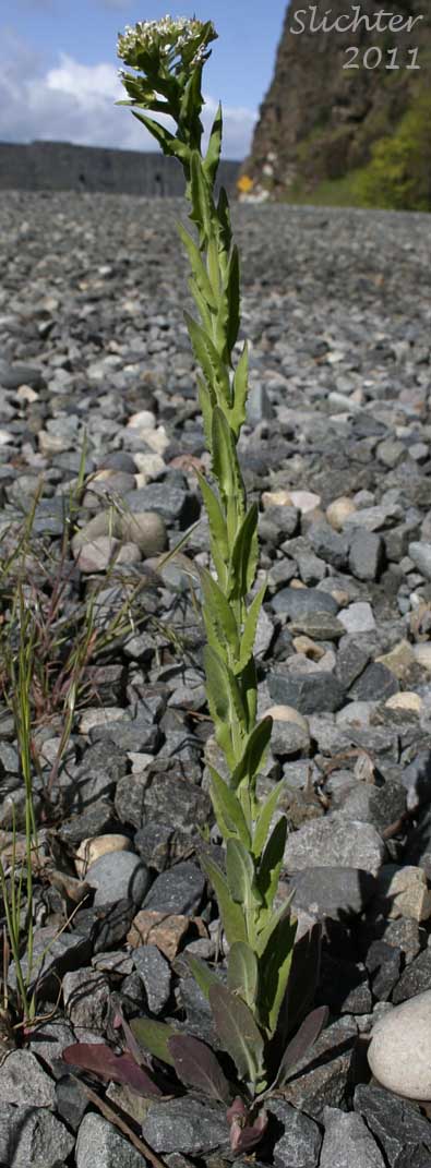 Field peppergrass as seen in gravels at the edge of the parking area for the Cherry Orchard Trail along Washington Highway 14 east of the Lyle Tunnels........April