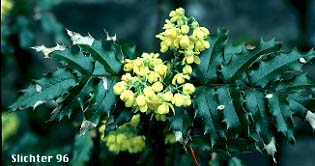 2. Shiny holly-like leaves with 5-11 prickly pinnate leaflets.