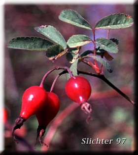 4. Flowers form red seed pods (essentially similar to miniature apples) called hips. The hips and flowers are usually solitary (not in clusters)