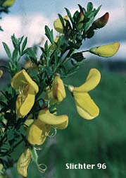 Scotch Broom: Leaflets thin, somewhat clover-like. Stems numerous, closely grouped, and dark green in color. Stems lack any prickles. Seeds contained in pea pods.