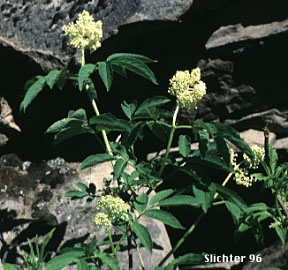 Above images are of the upper and lower leaf surfaces of a Red Elderberry.