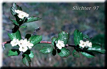 4. Flowers white, 5 petals, in clusters. Fruit are small, berry-sized purple apples.