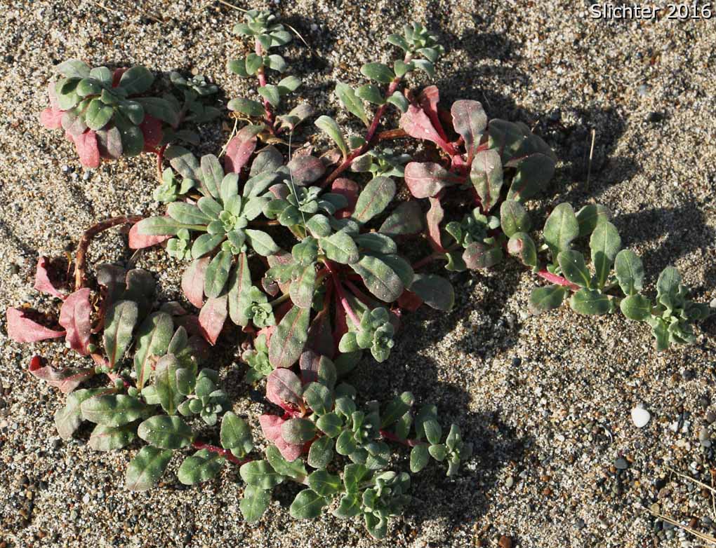 Basal leaf rosettes of beach evening-primrose found on sand flats along the road south to the Bandon Lighthouse at Bullards Beach State Park..........April 18, 2016.