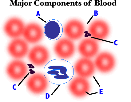 31. What component of blood is shown by letter A? What is its function?