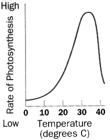 Describe why the rate of photosynthesis increases between 0 and 30 degrees Centigrade.