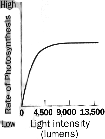 Describe why the rate of photosynthesis levels off at about 4500 lumens.