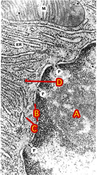 c. What is the name of the small dark round objects labelled C ?
