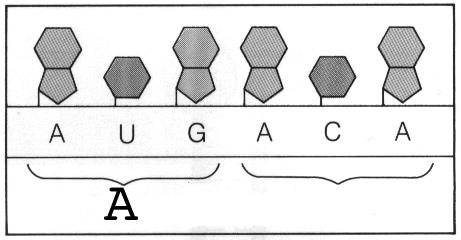 4. The molecule shown below is messenger RNA. The 3 letter triplet code on m-RNA as represented by the large red letter