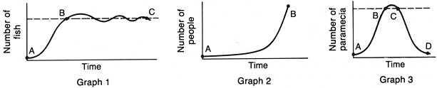 1 represents a population of fish introduced into a lake. Graph 2 represents
